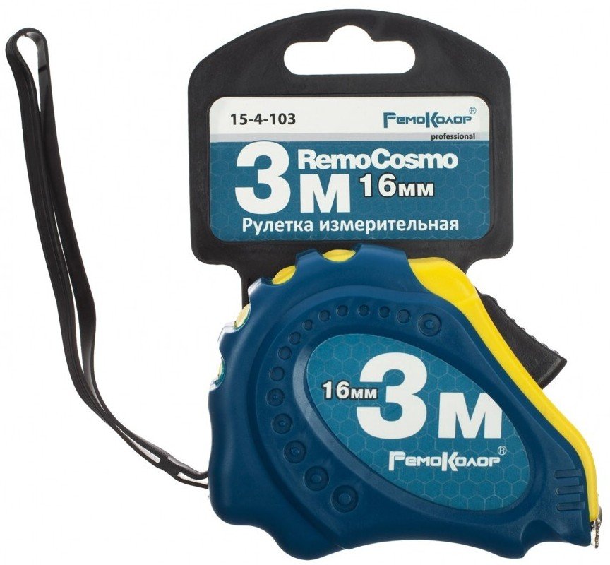 - Рулетка 3мх16мм RemoCosmo прорезиненный корпус, магнит.крюк (15-4-103)