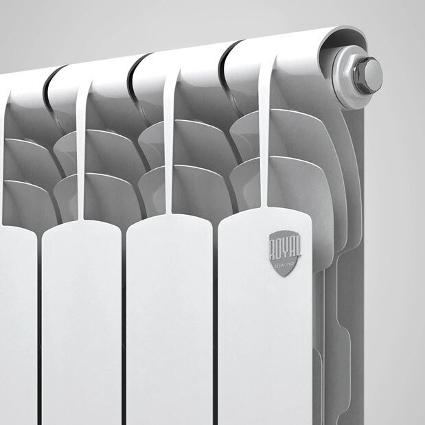 Биметаллический радиатор Revolution Bimetall производится в России на самом крупном и технически оснащенном заводе по производству радиаторов отопления методом литья под давлением в г. Киржач, Владимирской области. Это самый популярный биметаллический радиатор в линейке RoyalThermo. Дополнительные ребра на вертикальном коллекторе способствуют увеличению КПД радиатора и повышают его теплоотдачу на 5%. Данная технология запатентована под названием POWERSHIFT. Теплоотдача каждой секции биметаллического радиатора Revolution Bimetall 500 – 160 Вт, Revolution Bimetall 350 – 122 Вт.