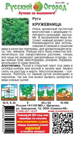 - Семена Пряность Рута Кружевница тройное назначение 0,1г