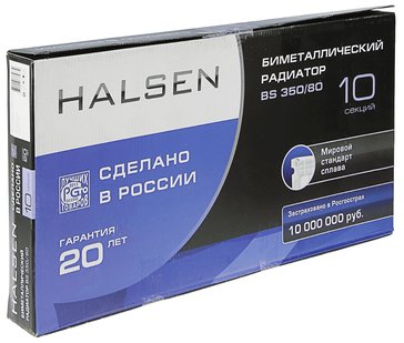 Биметаллические радиаторы «Halsen» предназначены для отопления многоэтажных домов. Радиаторы «Halsen» отечественного производства созданы на российском заводе «Форте Пром ГмбХ» на высокотехнологичном европейском оборудовании. В этих радиаторах секция выполнена из стального вертикального и горизонтального коллектора. Конструкция полностью исключает контакт теплоносителя с алюминиевым корпусом. Сочетание алюминиевого «корпуса» и стального «сердечника» позволяет прибору отличаться особой прочностью и долговечностью. Благодаря этой технологии прибор максимально устойчив к воздействию избыточного давления при гидравлических ударах в системах отопления. Особый дизайн, вертикальные и горизонтальные ребра биметаллического радиатора улучшают проход воздуха, что увеличивает теплоотдачу.