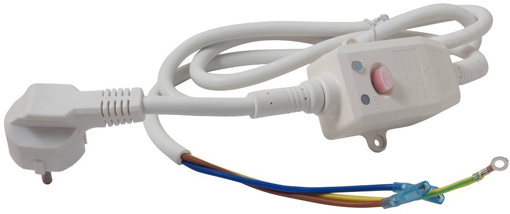 Электрический шнур, с вилкой и УЗО имеет контакты под разъем для водонагревателей и является надежной защитой от поражения пользователей электричеством при работе с оборудованием. Электрический шнур сделан с соблюдением всех норм безопасности и убережет потребителя от вероятных рисков. Также он способен предотвратить возгорание при возникновении дифференциального тока.