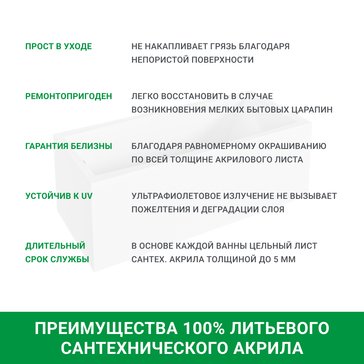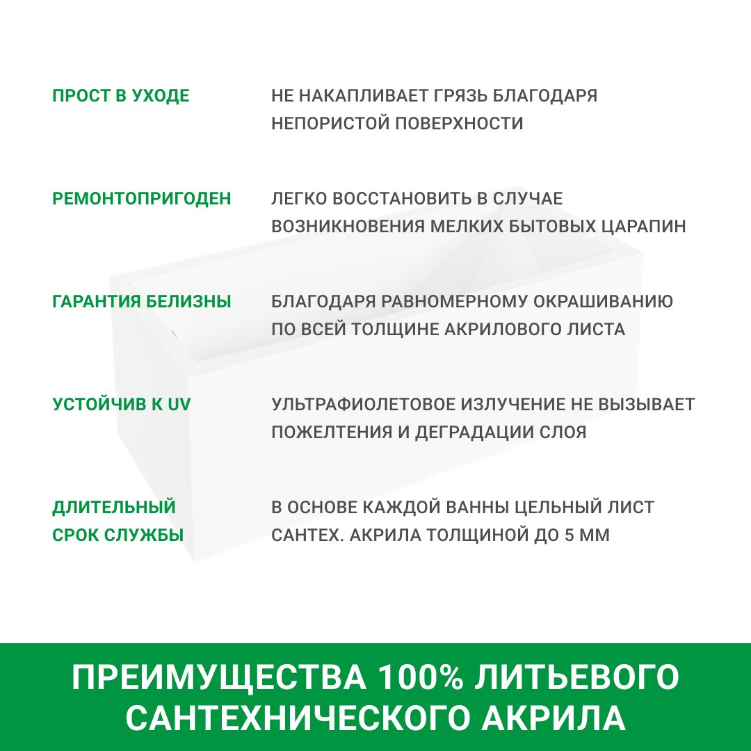 Акриловая ванна — идеальное решение для тех, кто ценит комфорт и стиль. Эта ванна станет изюминкой вашей ванной комнаты и позволит наслаждаться водными процедурами в полной мере.