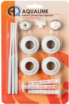 В набор входят все необходимые элементы: переходники, кран Маевского, заглушки и три надёжных кронштейна для крепления радиатора к стене.