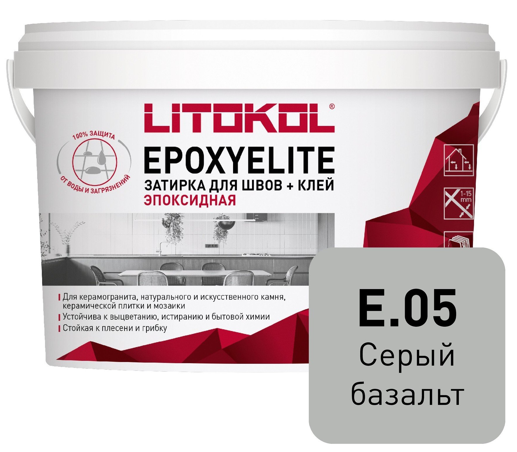 - Затирка эпоксидная EpoxyElite E.05 Серый базальт (1кг)