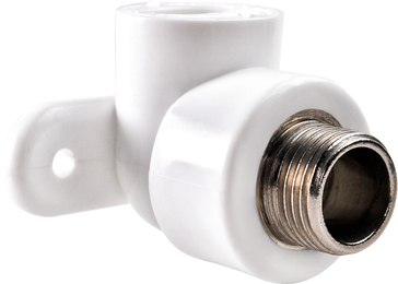 - Угольник полипропиленовый комбинированный с креплением d25-1/2" наружная резьба