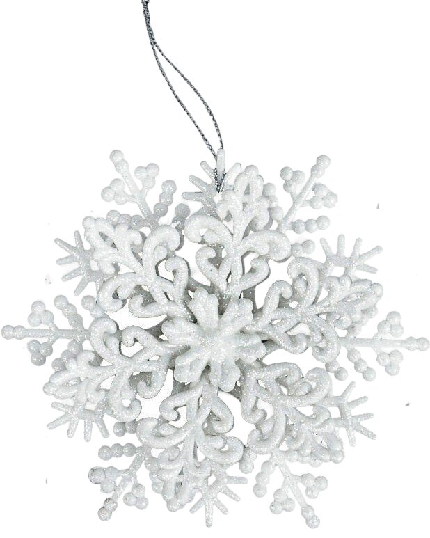 - Украшение подвесное Снежинка Классика белый глиттер 120х40мм