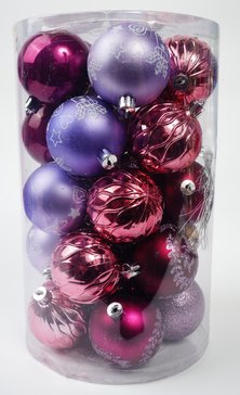 Чтобы декорировать елочку модно и элегантно, подвески на ней должны сочетаться между собой и с убранством комнаты. Важно не просто развесить свой "клад", но и хорошо продумать, где поместить ту или иную деталь. Один из самых простых способов решения этой задачи - выбрать елочные шарики одной цветовой гаммы. В этом вам поможет набор шаров 25 шт в фиолетовом оттенке, которые сделают украшение вашей новогодней елки еще более привлекательным.