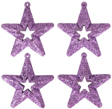 Чтобы декорировать елочку модно и элегантно, подвески на ней должны сочетаться между собой и с убранством комнаты. Важно не просто развесить свой "клад", но и хорошо продумать, где поместить ту или иную деталь. Один из самых простых способов решения этой задачи - выбрать елочные украшения одной цветовой гаммы. В этом вам поможет набор украшений в форме звезды из 4 предметов в фиолетовой расцветке, который сделает украшение вашей новогодней елки еще более привлекательным.