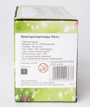 - Электрогирлянда Нить внутренняя 9м 100 LED розовый SYCL-1504