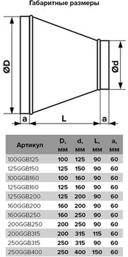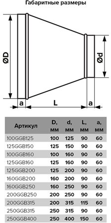 - Редуктор для круглых воздуховодов,D125/200,оцинкованная сталь