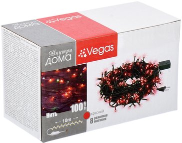 - Электрогирлянда Нить 100 красных LED ламп контроллер 8 режимов 10м VEGAS