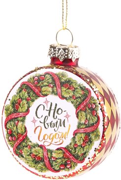 - Украшение подвесное новогоднее Барабан с сосновым венком 6,5x6,5x3см стекло,87365