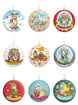 - Шар Символ года Тигр с новогодним пожеланием 6,5см,86352