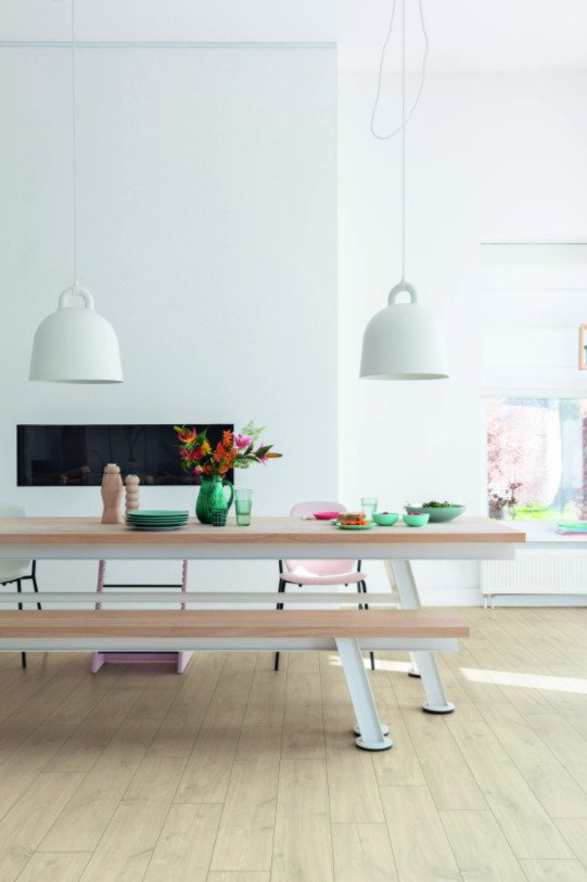 Попрощайтесь с проблемами залива водой, выбрав водостойкий пол Quick-Step. Эти полы имеют исключительно стильный и естественный вид, а также на 100% устойчивы к влаге, поэтому их очень легко чистить!