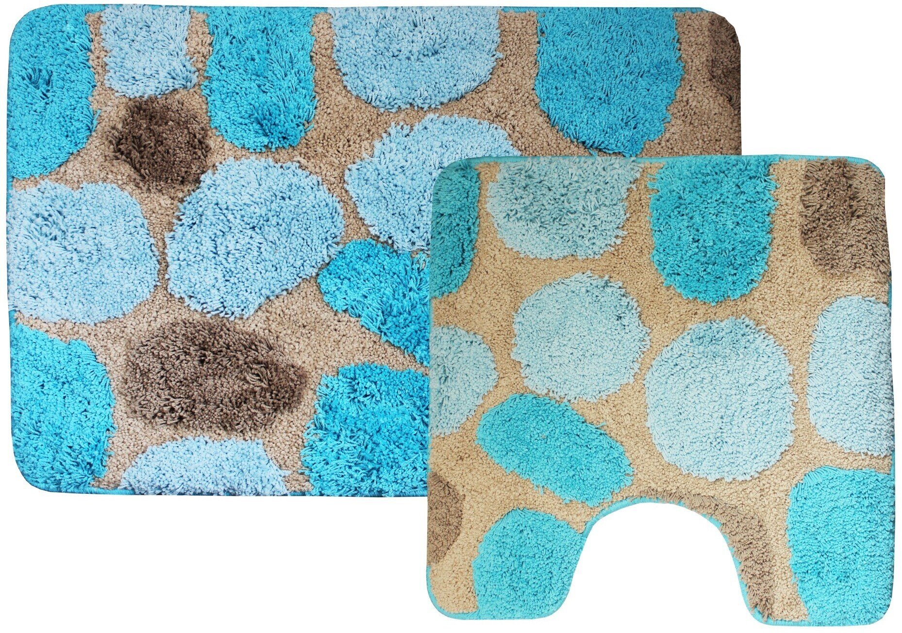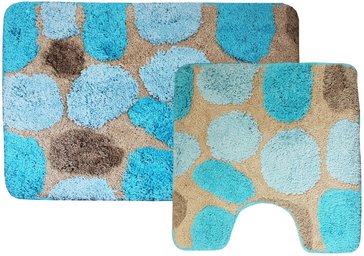 - Набор ковриков для ванной и туалета 50х80 и 55х55 Лора синий полипропилен