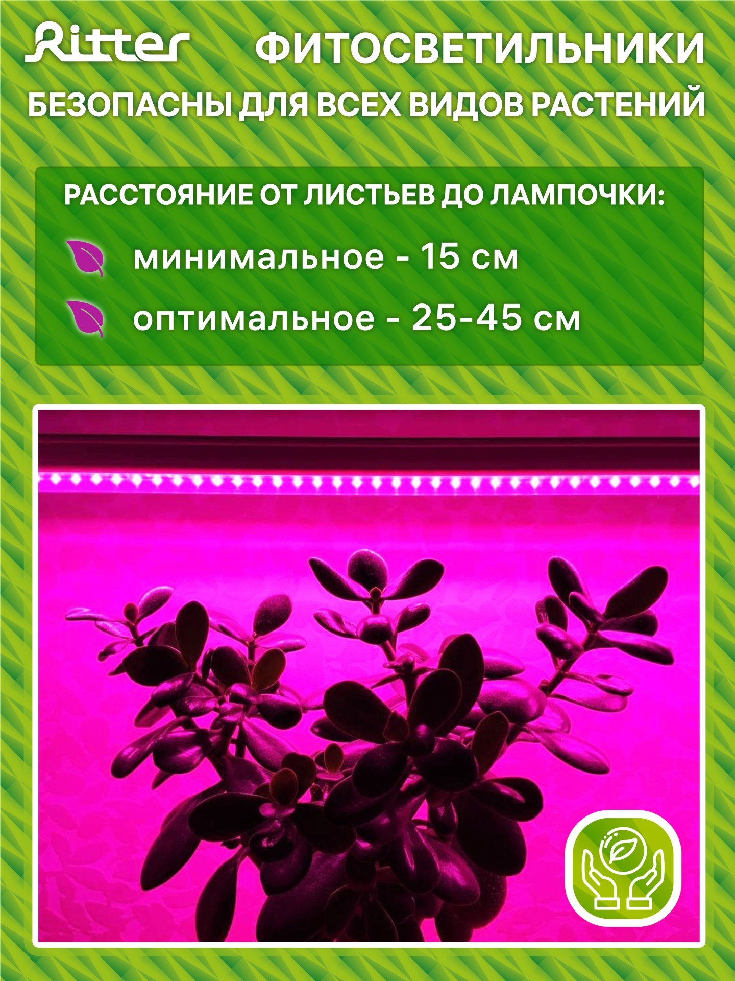 - Светильник Ritter для роста растений красно-синего спектра Т5 10Вт провод с вилкой 2м с прищепкой 572мм