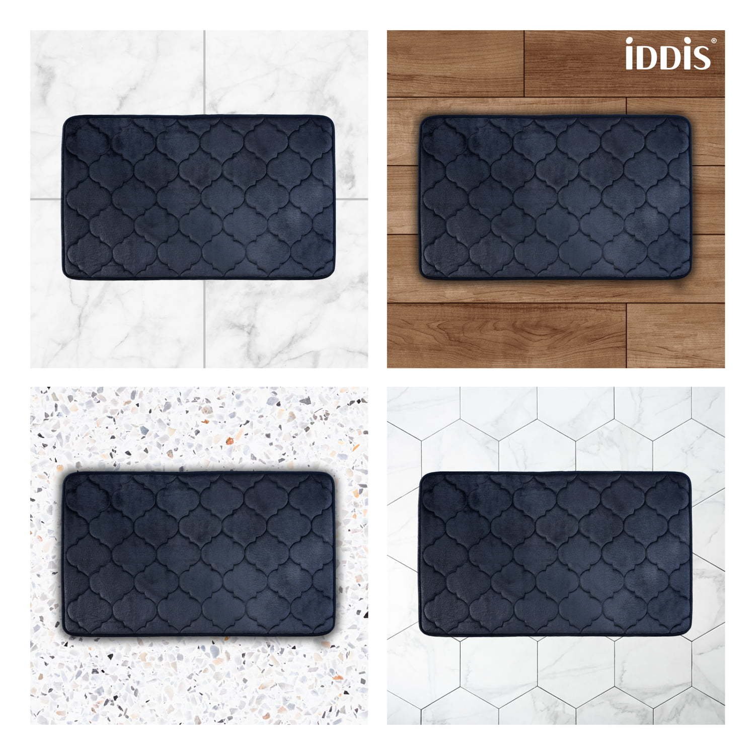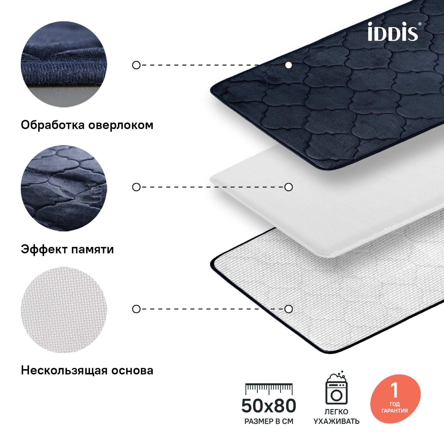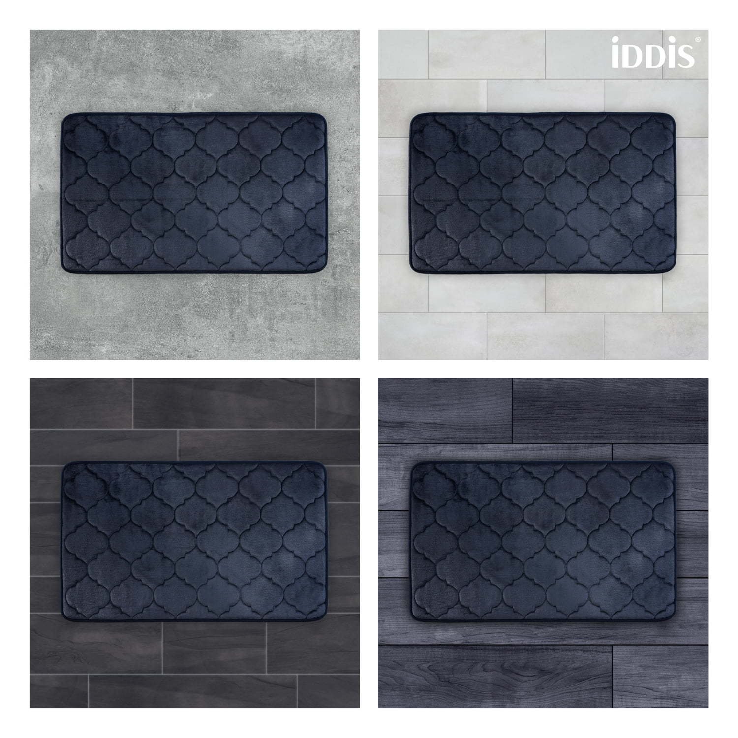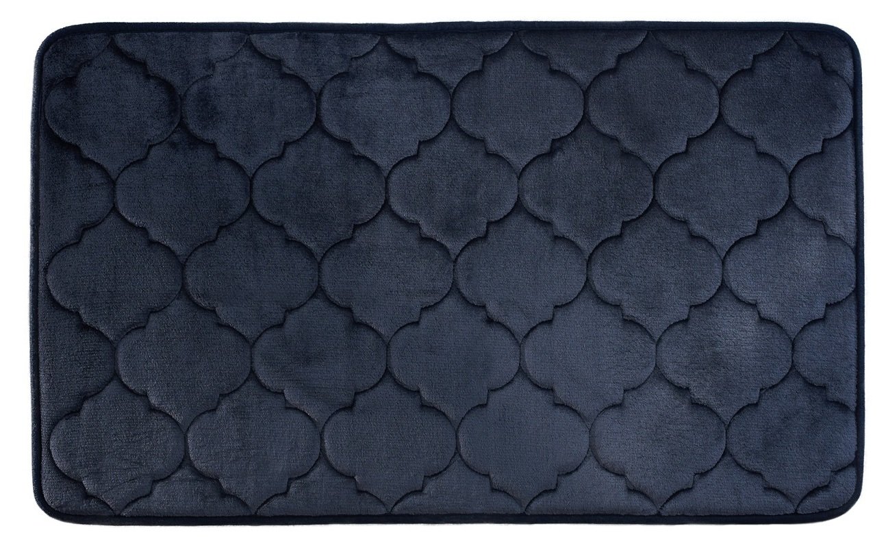 Удивительно мягкий коврик цвета ночного неба с эффектом памяти. В состав изделия входит слой специальной запоминающей пены, которая принимает форму ног, создавая приятную поддержку без лишнего давления на стопу. Такая поверхность обладает массажным эффектом, помогает сохранить ощущение уюта и расслабленности после душа. Рельефный ромбовидный узор оставляет простор для экспериментов со стилем и позволяет добавить динамики в пространство любой ванной комнаты.