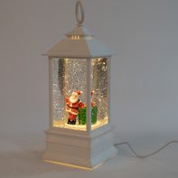 Декоративный новогодний фонарь светодиодный высотой 25 см создаст уютную праздничную атмосферу дома! Светильник фонарь выполнен из ПВХ, внутри расположены блестки, создавая эффект падающего снега. Внутри фонарика находятся фигурки ,они подсвечиваются лампочкой, также имеется музыкальное сопровождение.