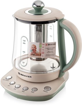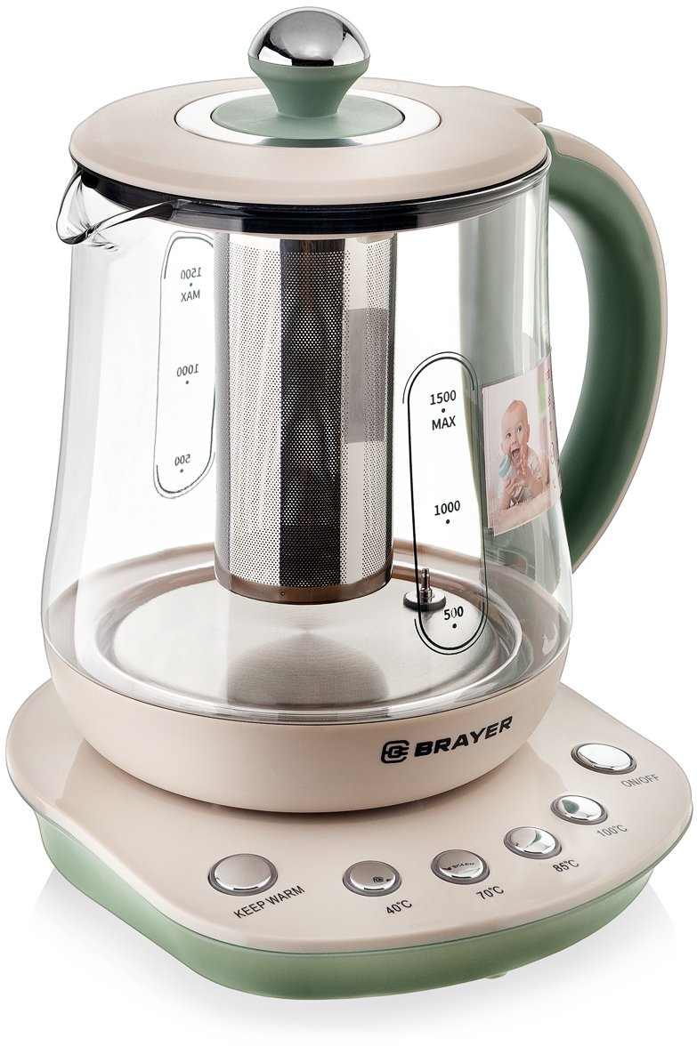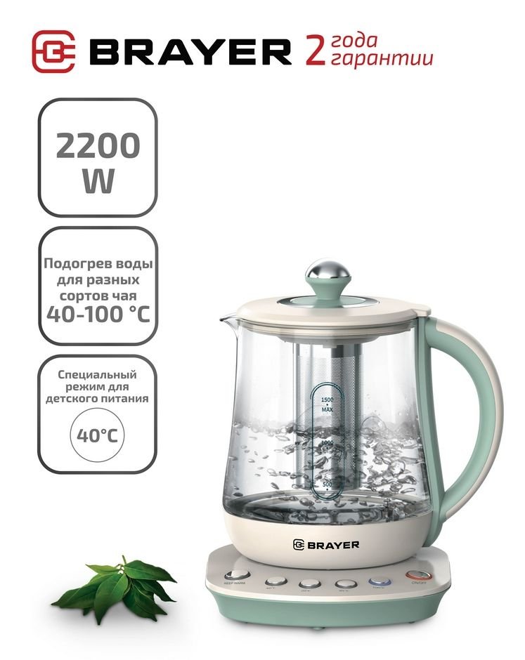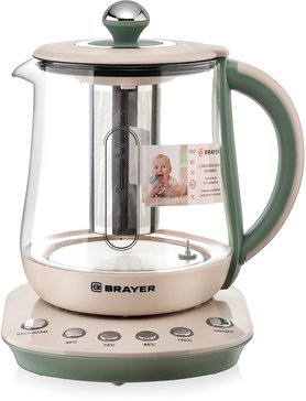 - Чайник электрический Brayer BR1015 2200Вт 1,5л стекло, на подставке, функция заваривания