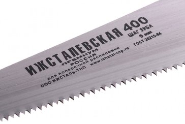 - Ножовка по дереву Ижсталь 400мм шаг зуба 5мм двухкомпонентная рукоятка