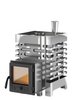 Стальной кожух открытой каменки вмещает в себя до 80 килограммов банного камня.