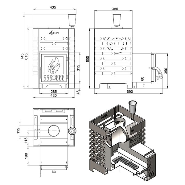 Печь ASTON из нержавеющий стали марки AISI 430 устойчива к окислению и прогару.