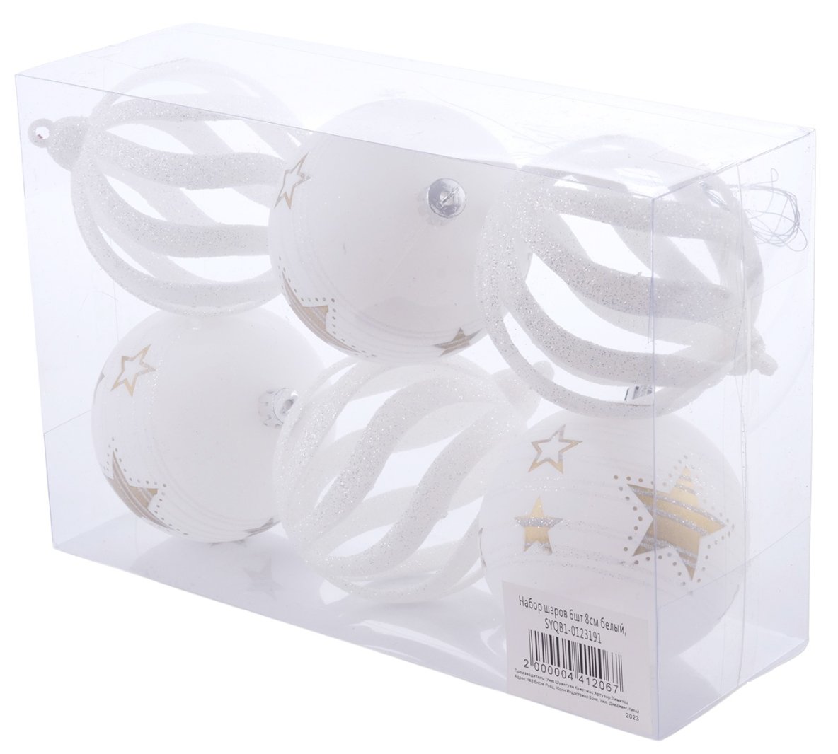 - Набор шаров 6шт 8см белый, SYQB1-0123191