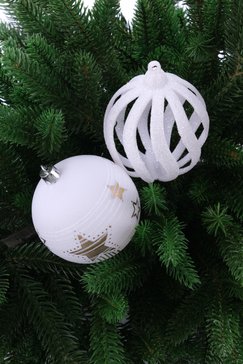 Чтобы декорировать елочку модно и элегантно, подвески на ней должны сочетаться между собой и с убранством комнаты. Важно не просто развесить свой "клад", но и хорошо продумать, где поместить ту или иную деталь. Один из самых простых способов решения этой задачи - выбрать елочные шарики одной цветовой гаммы. В этом вам поможет набор шаров 6 шт с белым отливом, которые сделают украшение вашей новогодней елки еще более привлекательным.