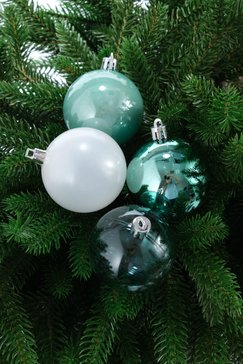 Чтобы декорировать елочку модно и элегантно, подвески на ней должны сочетаться между собой и с убранством комнаты. Важно не просто развесить свой "клад", но и хорошо продумать, где поместить ту или иную деталь. Один из самых простых способов решения этой задачи - выбрать елочные шарики одной цветовой гаммы. В этом вам поможет набор шаров 24 шт с мятно белым отливом, которые сделают украшение вашей новогодней елки еще более привлекательным.