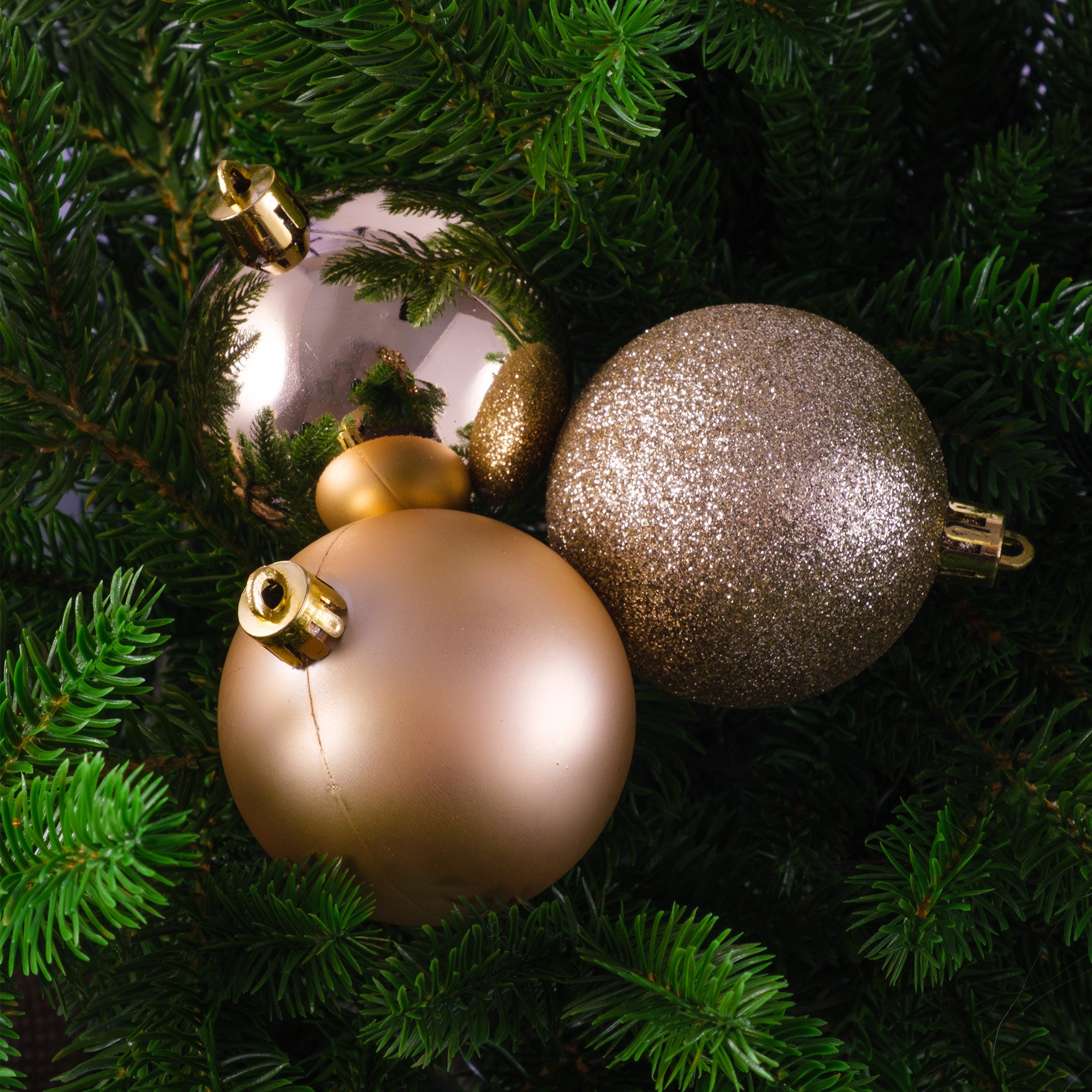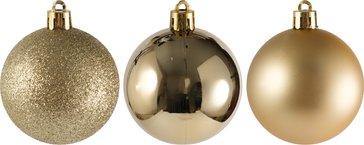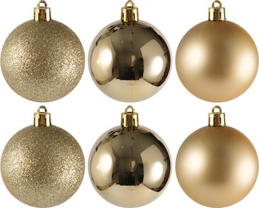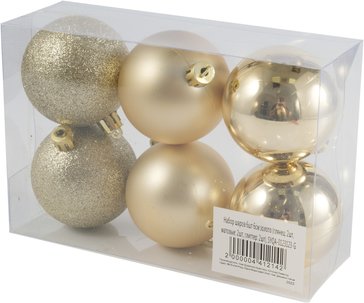 - Набор шаров 6шт 6см золото (глянец: 2шт, матовые: 2шт, глиттер: 2шт), SYQA-0123123-G