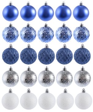 - Набор шаров 25шт 6см, голубой+серебро+белый, SYQA-0123245