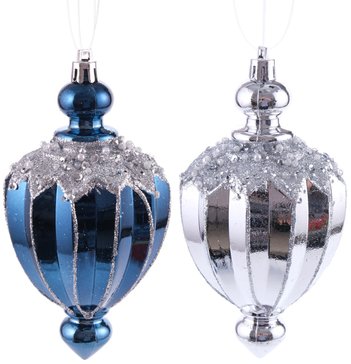 Чтобы декорировать елочку модно и элегантно, подвески на ней должны сочетаться между собой и с убранством комнаты. Важно не просто развесить свой "клад", но и хорошо продумать, где поместить ту или иную деталь. Один из самых простых способов решения этой задачи - выбрать елочные украшения одной цветовой гаммы. В этом вам поможет набор украшений из 2 предметов в сине серебряной расцветке, который сделает украшение вашей новогодней елки еще более привлекательным.