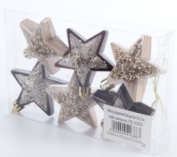 - Набор украшений Звезды 6шт 6х2,5см, кофе+шампанское, SYQC-0123070