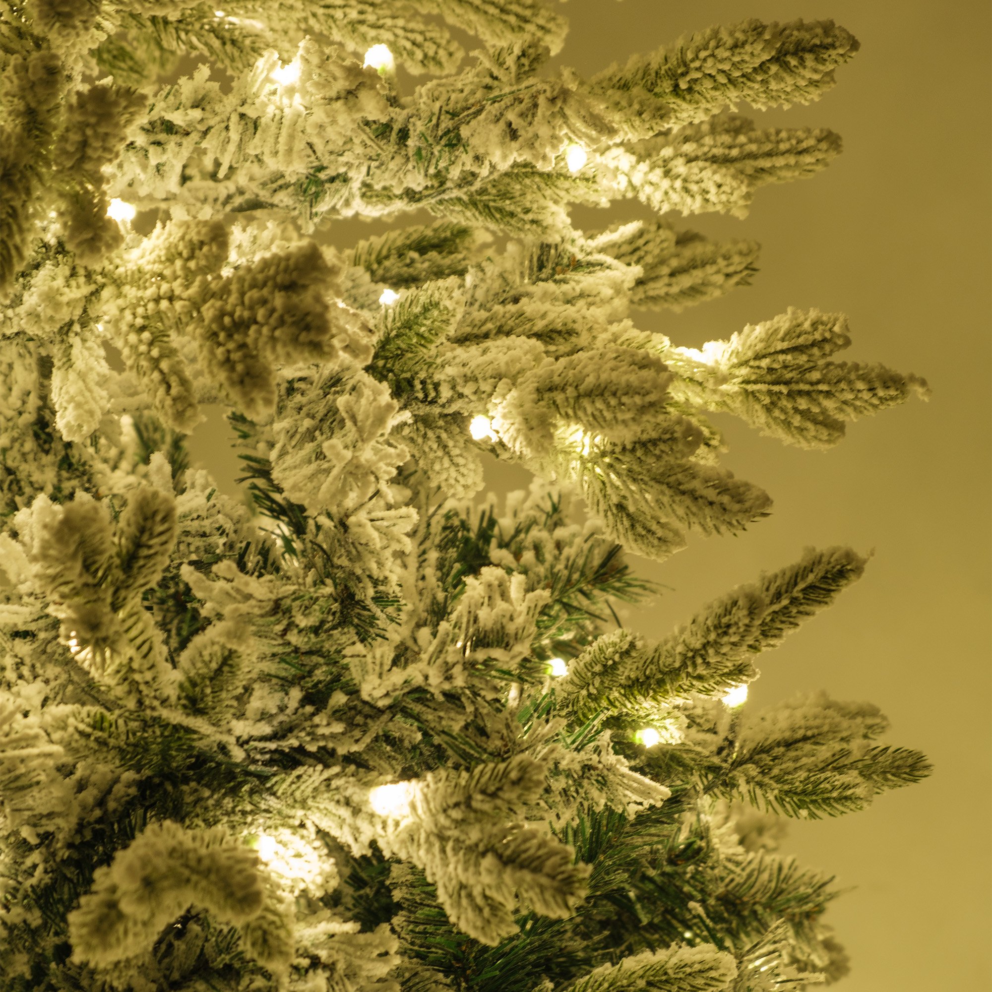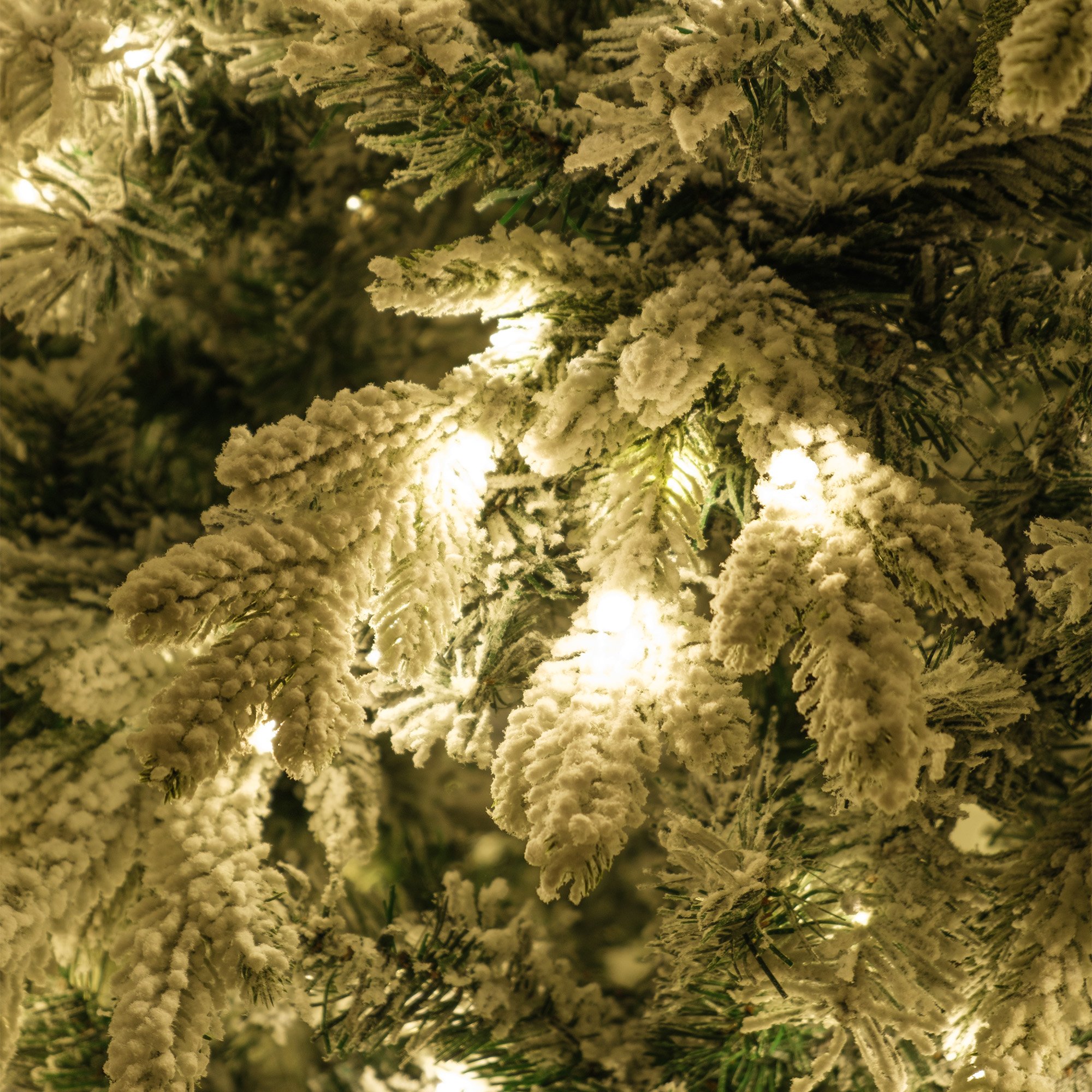 Флокирование и подсветка из 350 светодиодов создают потрясающий эффект! Высота 180см подошла для нашей гостиной. Снежное покрытие не осыпается, не пачкает руки. Свет равномерный, без темных пятен. Собирали вдвоем с женой - справились за 20 минут. После хранения в чехле выглядит как новая. Уже второй год радует нас в праздники - качество действительно на высоте!