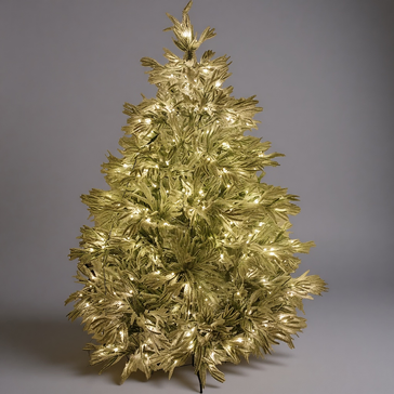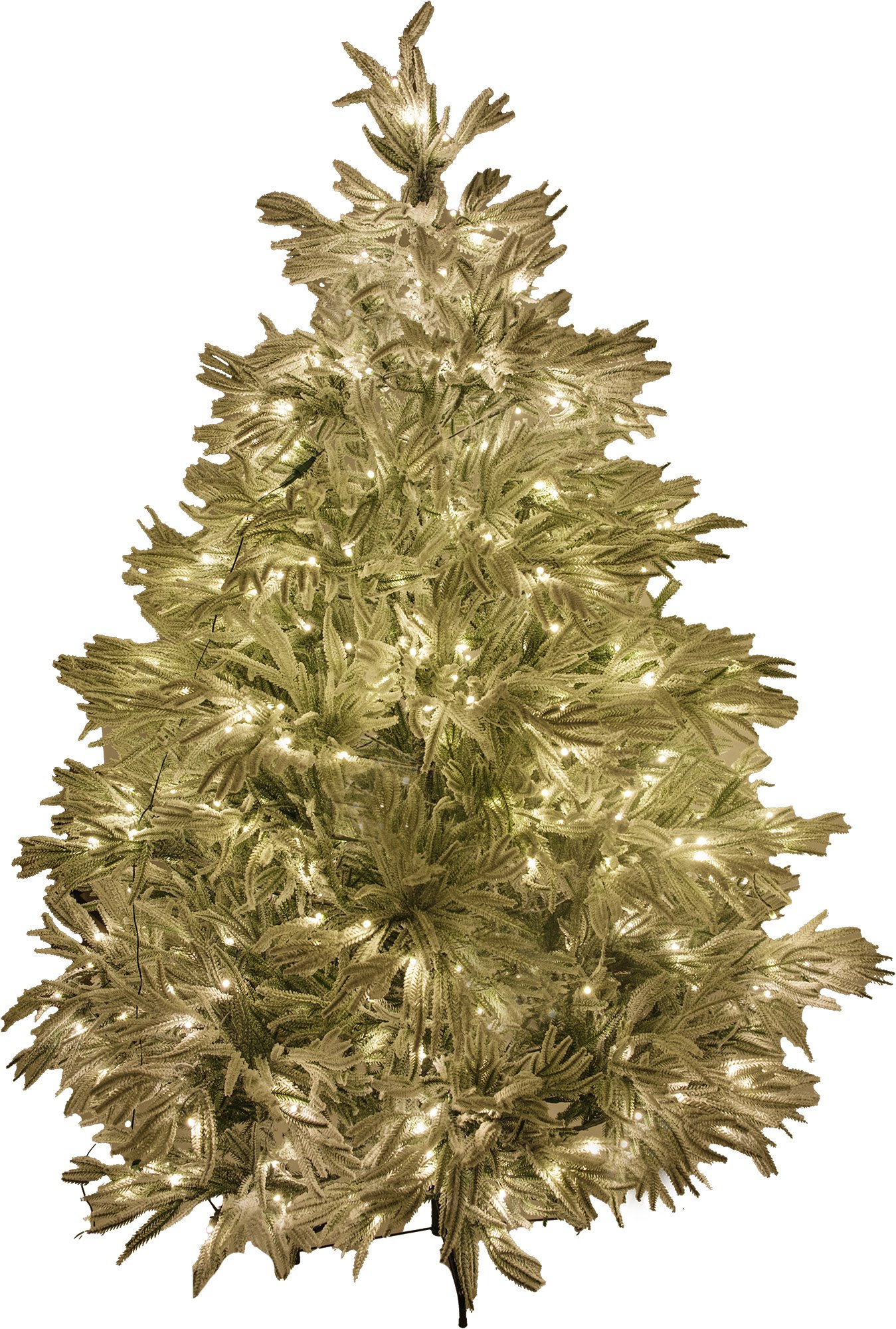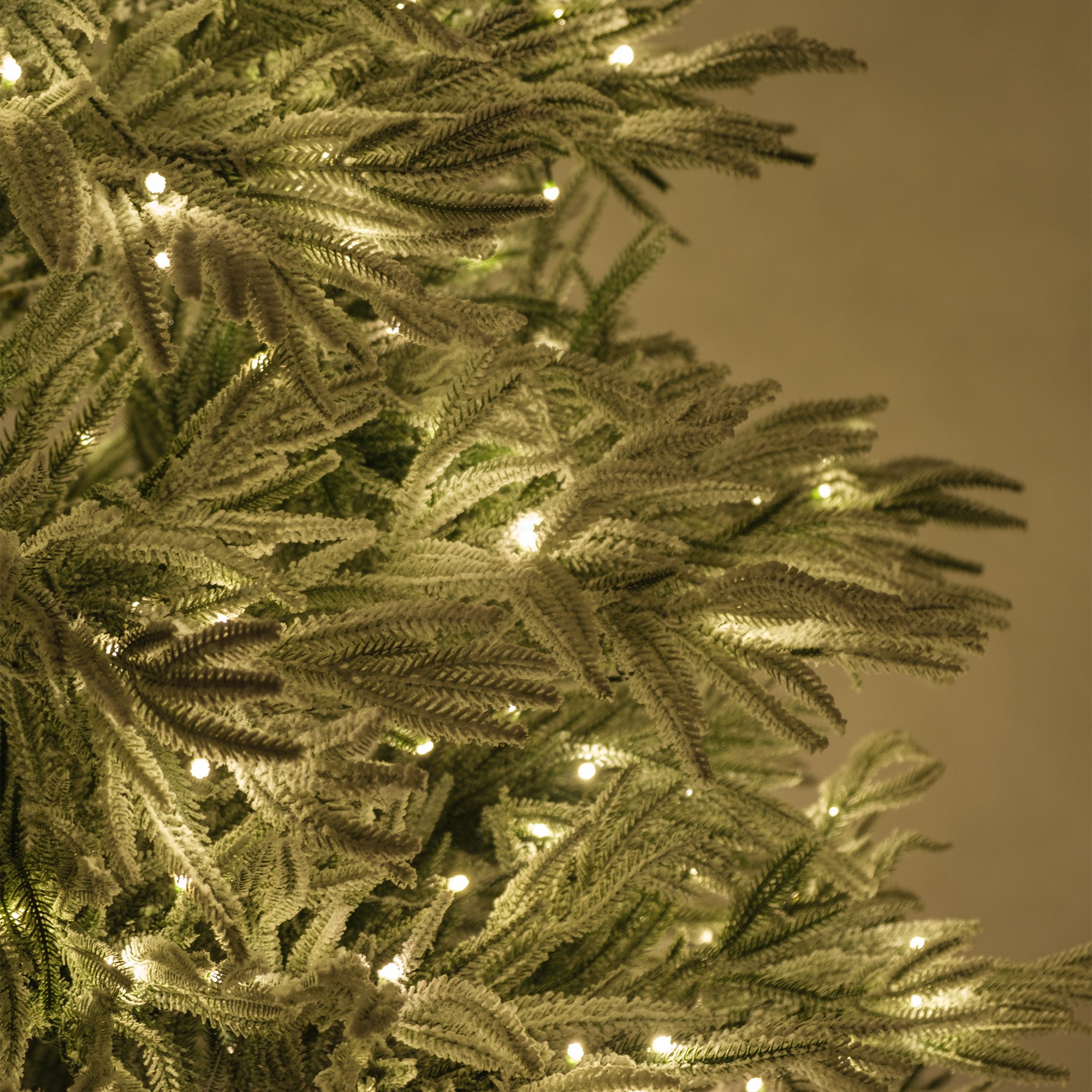оригинальная форма елки, пышная заснеженная (флокированная) крона, LED-подсветка, теплый белый свет