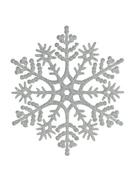 Классическая изящная новогодняя игрушка Снежинка серебристая, тонкая, ажурная. Крепление - веревочка