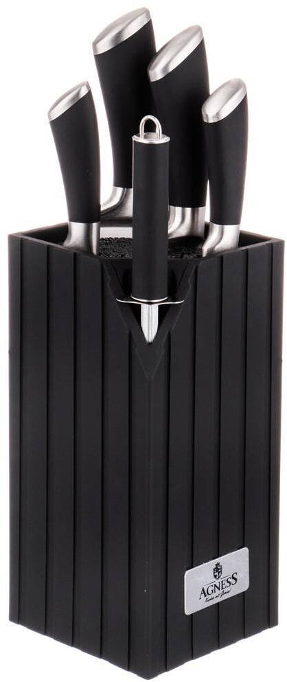 - Подставка д/ножей универсальная Agness Best 12х12х23см пластик, черный