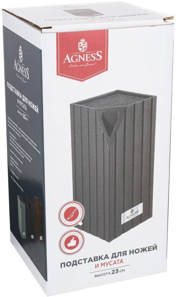 Подставка для ножей – необходимый аксессуар на каждой кухне. Подставка Agness с наполнителем легко и удобно решает проблему хранения ножей, защищая лезвия ножей от загрязнения. Преимущества подставки Agness: