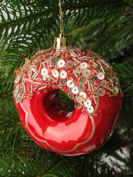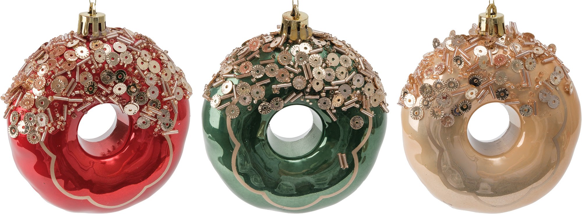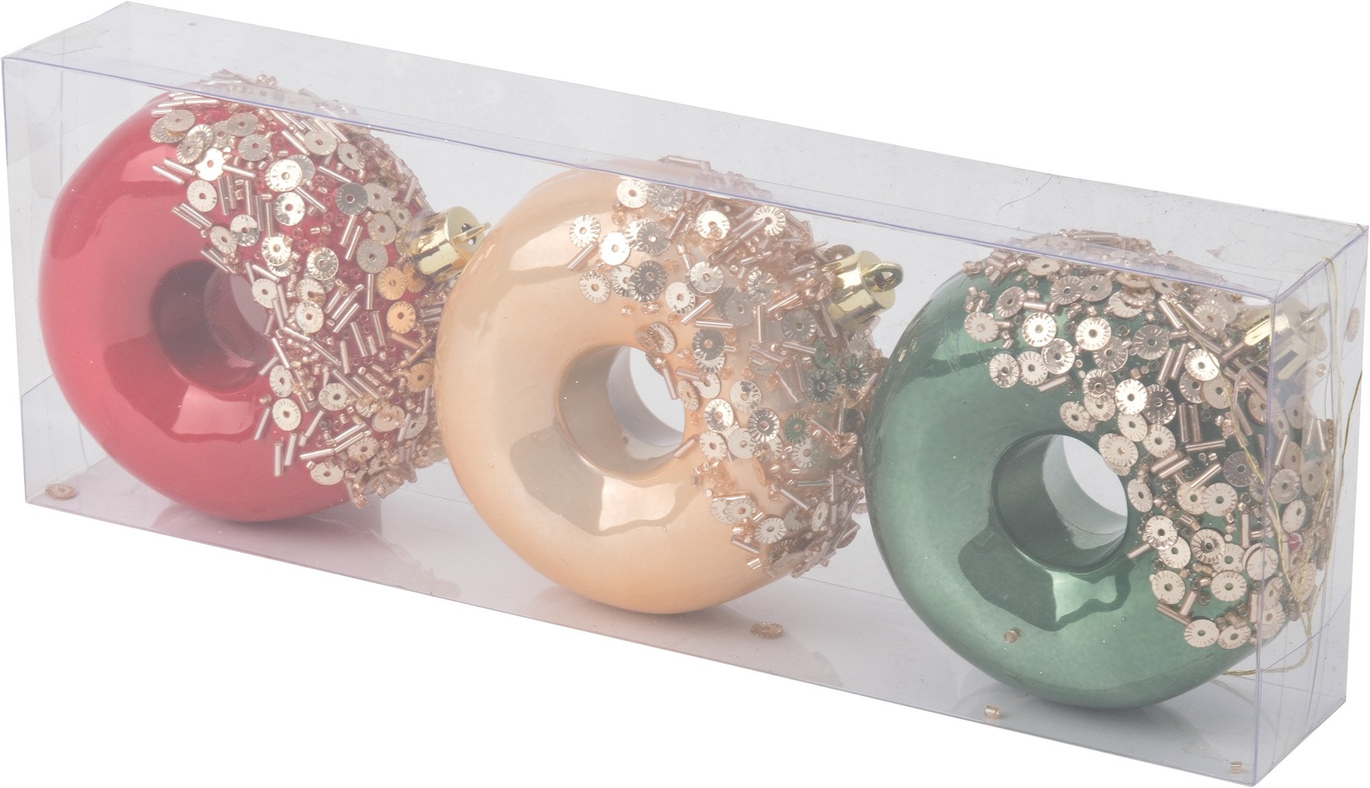 - Набор украшений Пончики 3шт 8,5см красный+зеленый+шампань, SYQD1-0124007