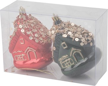 - Набор украшений Домики 2шт 10х8,5см красный+зеленый, SYQD1-0124010