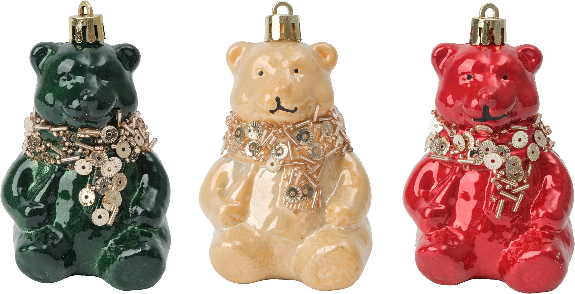 - Набор украшений Мишки 3шт 8см красный+зеленый+шампань, SYQD1-0124017