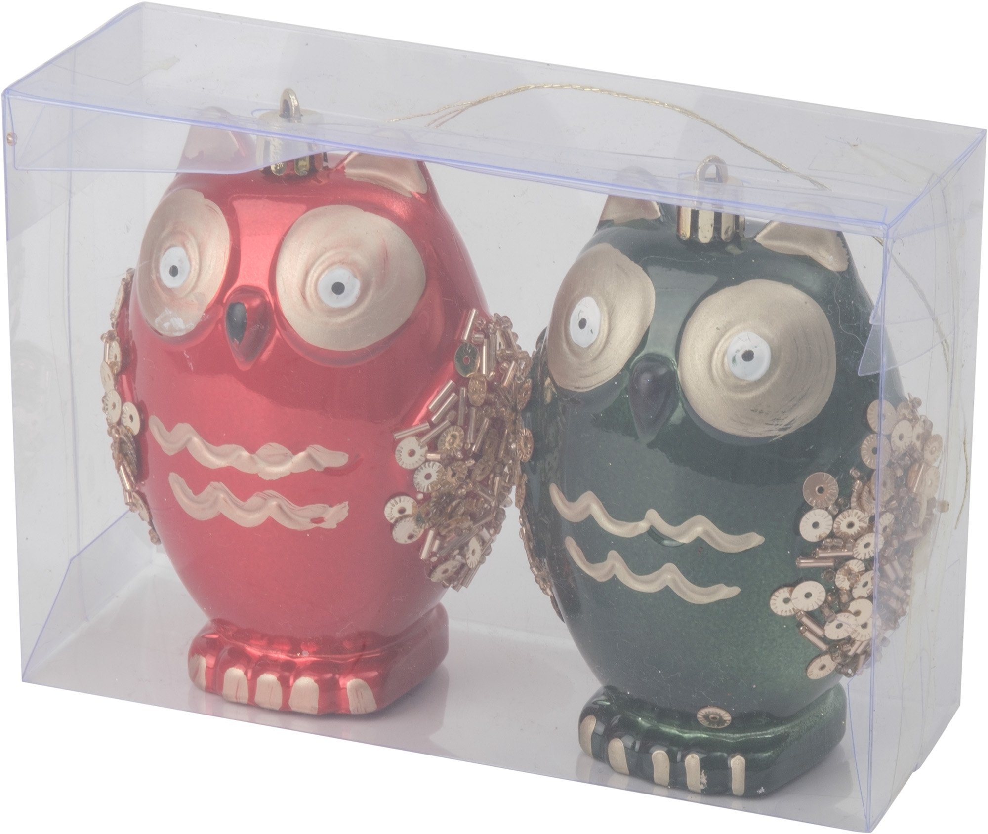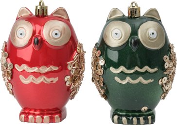 - Набор украшений Совы 2шт 10,5х7,5см красный+зеленый, SYQD1-0124020