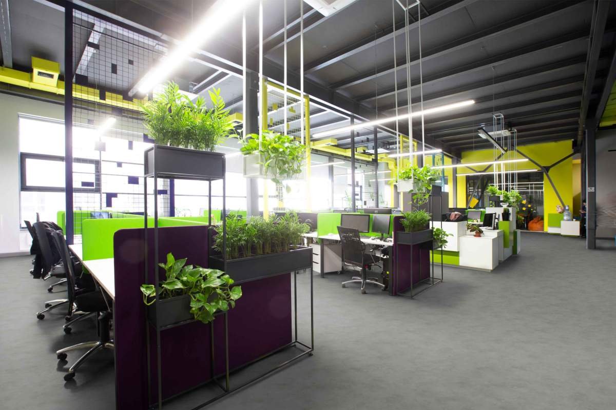Серый линолеум со строгим однотонным дизайном гармонично впишется в современные дизайнерские интерьеры, создавая атмосферу уюта и спокойствия. Этот оттенок легко сочетается с офисной мебелью и оргтехникой.