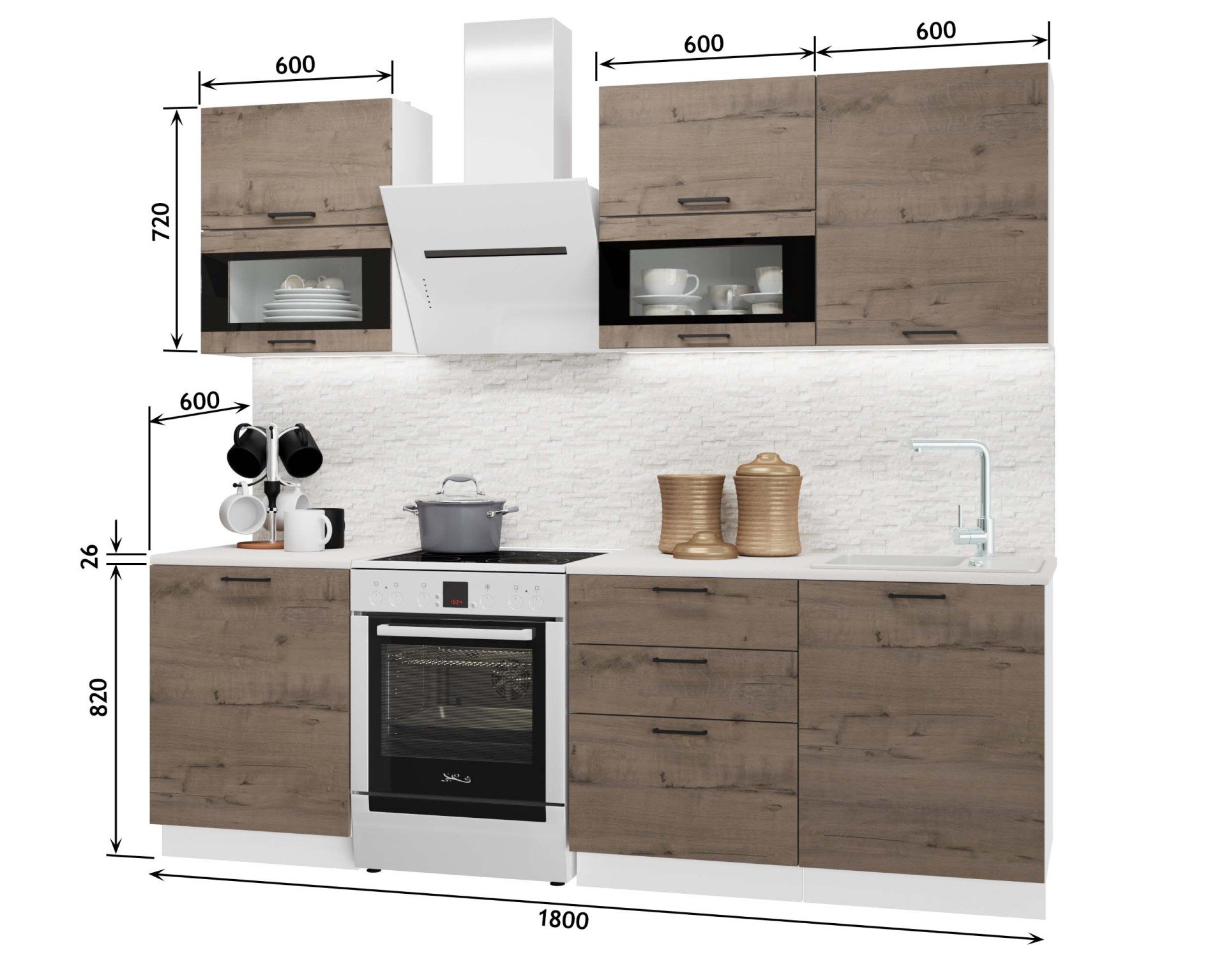 -25%Насладитесь атмосферой солидности и уюта с этим гарнитуром в стиле «Дуб ирландский темный». Богатая текстура дерева и теплый глубокий оттенок создают в кухне благородную и спокойную обстановку. Сбалансированная комплектация с акцентом на удобные ящики и элегантные витрины позволяет не только все вместить, но и красиво показать, делая кухню по-настоящему гостеприимной.