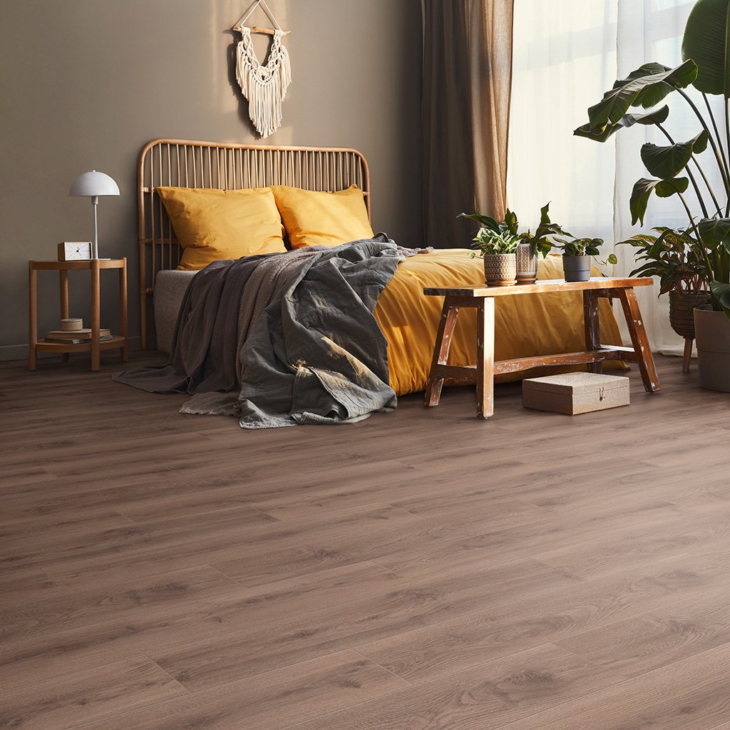 Дуб Алатау — тёплый и уютный! Отлично лег в гостиной. Фаска подчёркивает натуральность дерева. Уложили с подложкой — стало тише и мягче. Очень довольна качеством за свои деньги.