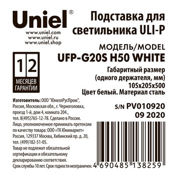 - Подставка под фито светильник UFP-G20S H50 WHITE