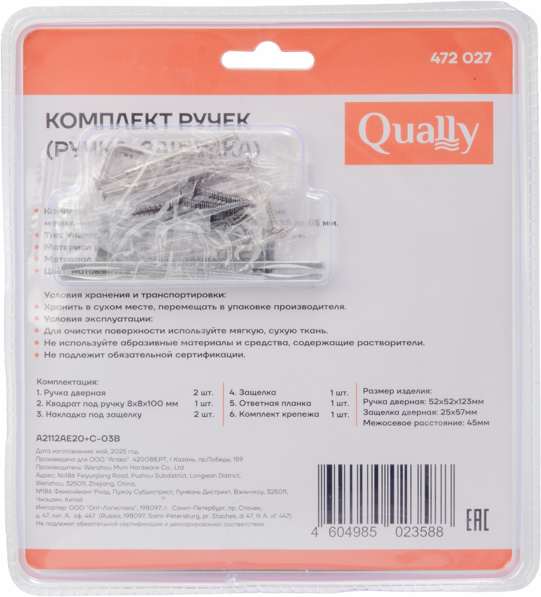 - Комплект ручек (ручка, защелка) Qually A2112AE20+C-03B матовый графит