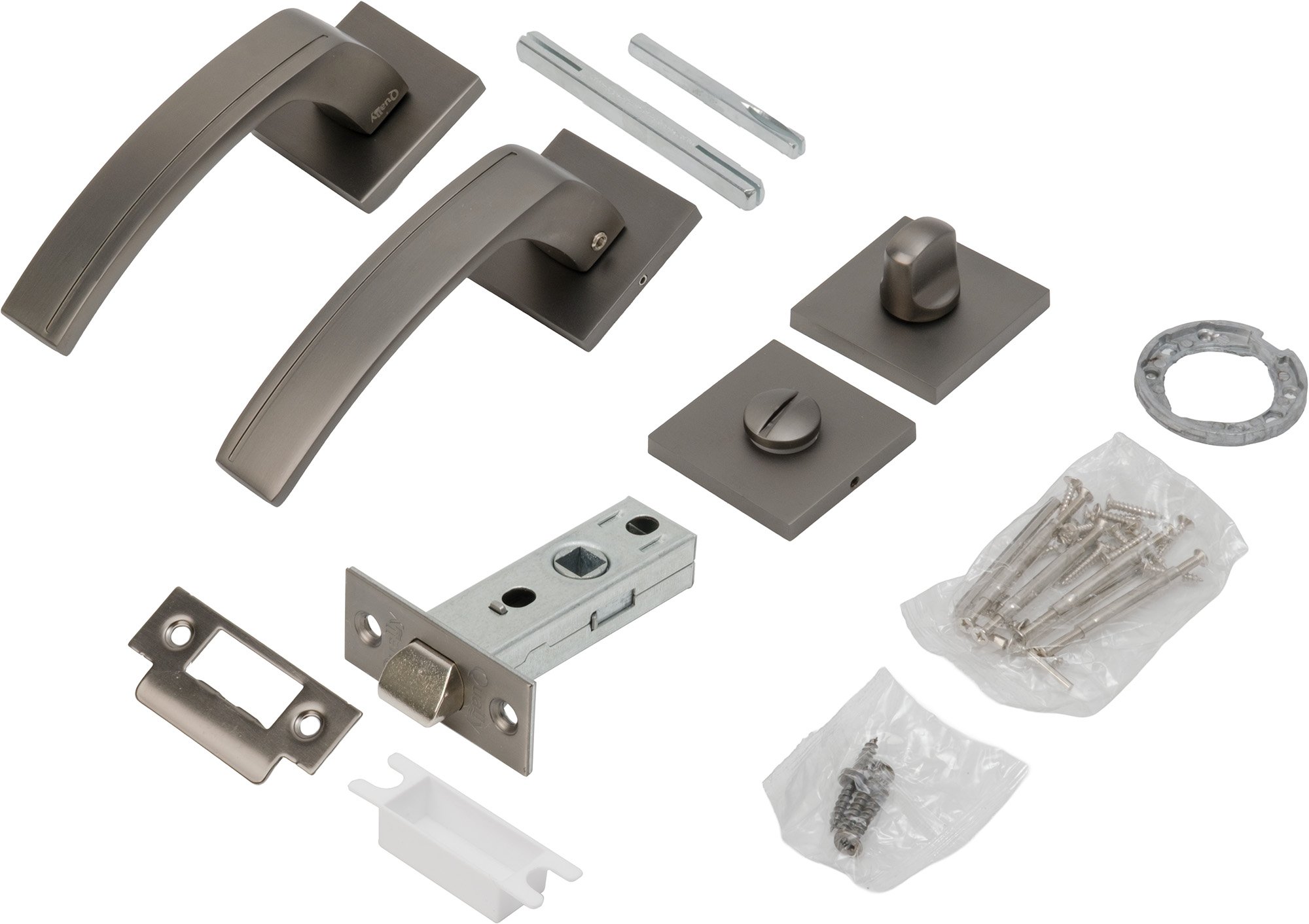 Комплект ручек (ручка, защелка) Qually A2112AE20+C-03B матовый графит