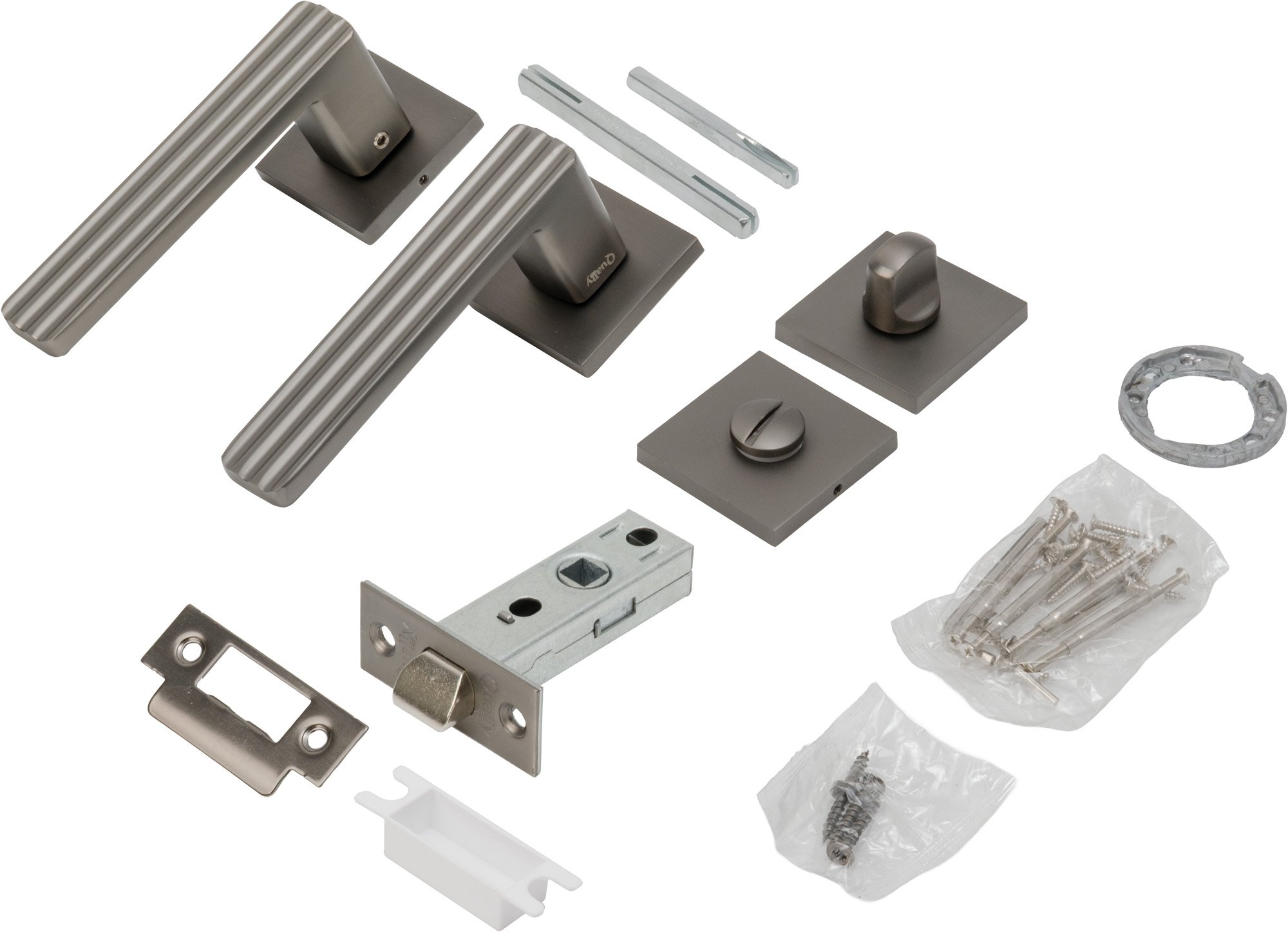 - Комплект ручек (ручка, защелка) Qually A2158AE20+C-03B матовый графит