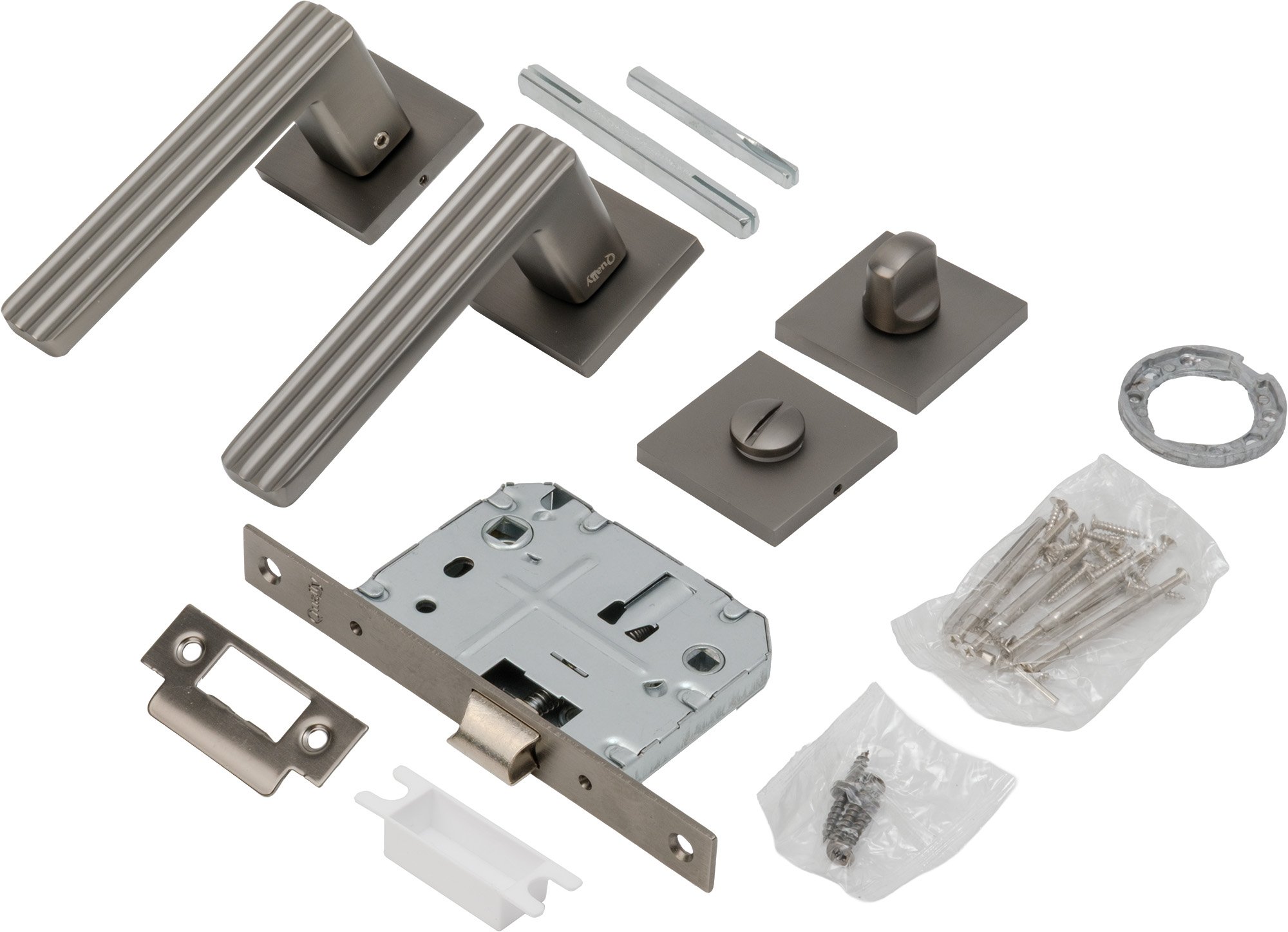 - Комплект ручек (ручка, защелка, фиксатор) Qually A2158AE20 Lock матовый графит